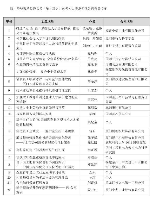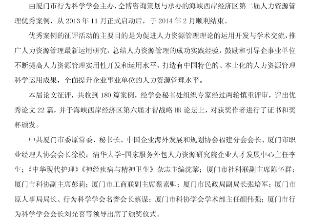 第二届海峡西岸人力资源管理优秀案例征集圆满完成