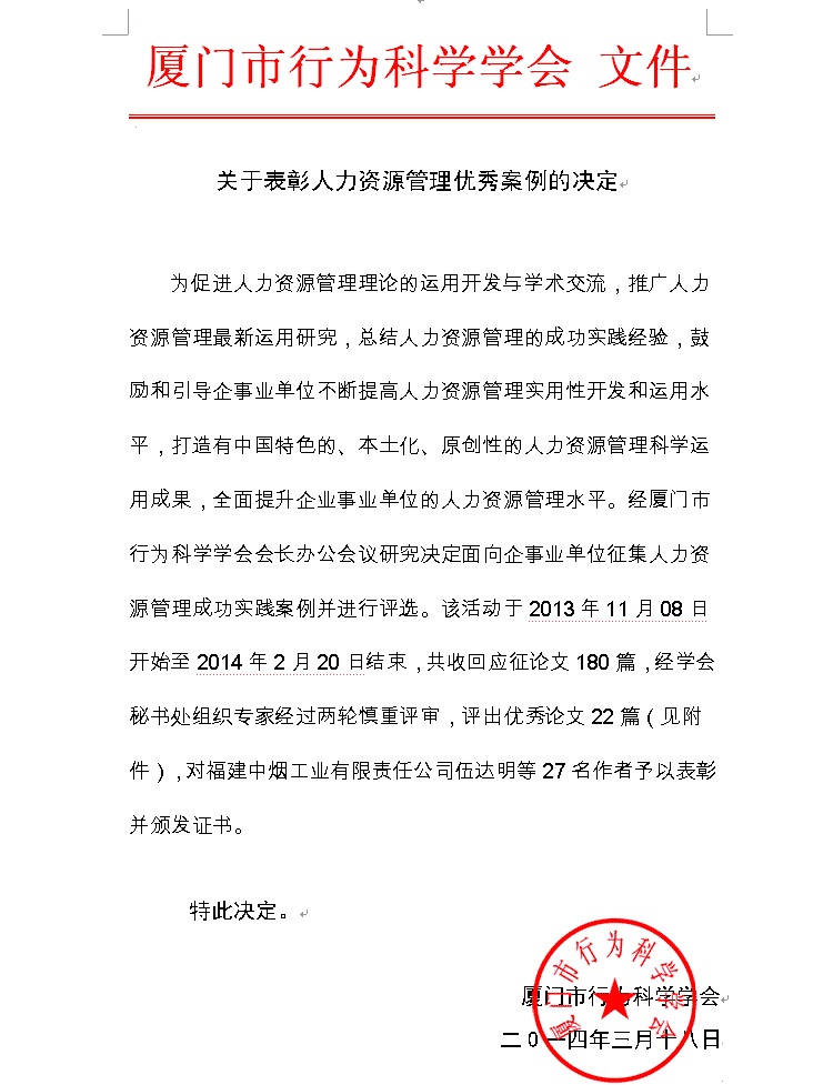 《海峡西岸经济区第二届(2014)优秀人力资源管理案例获奖名单》
