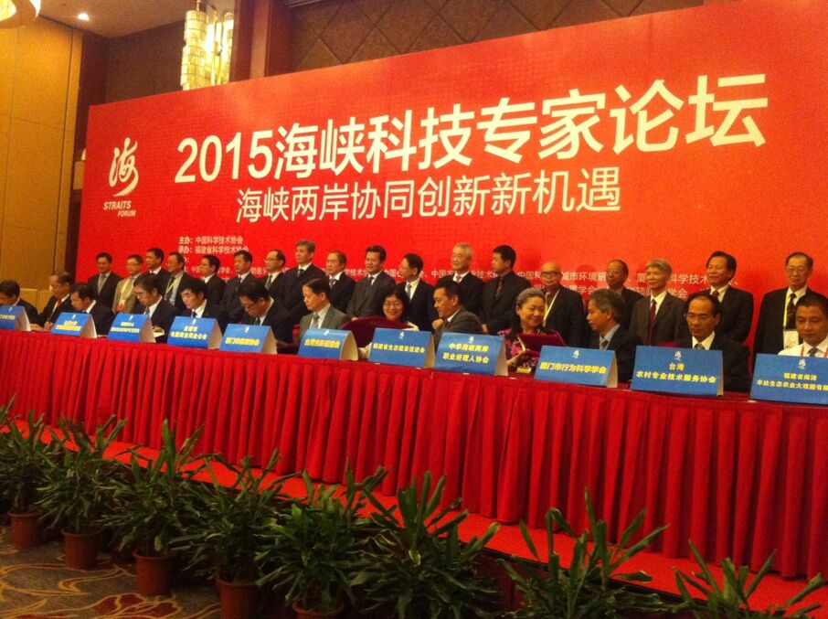2015年6月14日下午,2015海峡科技专家论坛开幕式在厦门翔鹭国际大酒店举办。市行为科学学会会长刘光喜、常务副会长涂满章、秘书长白欣等人出席参加论坛活动。主会场上,常务副会长涂满章先生代表厦门市行为科学学会和厦门市职业经理人协会与台方单位中华海峡两岸职业经理人协会黄钰媖理事长签订了双方的项目交流合作协议,双方将在企业经理人才培训、认证及学术交流方面进行深层次的合作。
